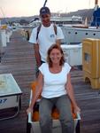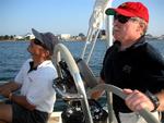Luis trims the jib of "Mistress" in the 6th 2003 San Diego Beer Cup Race. Ray, the Captain, and Claudia (apparently rail meat?) Galen the grinder. Just another perfect day on the Bay. Cherie at the helm! The crew of "Mistress" looking busy. Holding on! You have to watch out for cars...even on the water. The gang on the bay. 107 boats all shapes and sizes race ever Wednesday. Some come to race, while others come just to have fun! It's all fun until the race starts, then it is serious business. Time to fly the kite! The spinnaker/sun-shade. Sailing brings out the smiles in everyone. Flying wing on wing. Brothers Bill and Ray have another great day on the water. Would it be a beer can race without beer? Sailing is both work and fun! A new way to "meet the neighbors." Looks like our boats wanted to get to know each other a bit better. The only casualty--Claudia's torn jeans. But hey...there's another use for sailing tape! Luis gives his wife Claudia a first class ride off the dock. Click on each picture to see it full size.