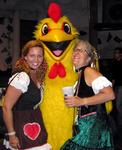How funky is your chicken? Cherie and Beth found out at Old World's Oktoberfest 2004. |  Ready for lots of beer and sausages? (2 Cheries and 2 Elizabeths.) |  How about them apples? (They're pomegranates!) |