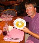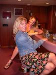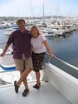 Caitlyn and Cherie sip cocktails on deck as they await their 7-course meal served by chef Christopher. So that's what a $10-million dollar boat looks like? Are you sure you want Caitlyn at the helm? Chef Chris gives the ladies a tour of the yacht. Chris and Caitlyn. If Chris is in the kitchen, does that mean the ladies have to stay in the engine room? Cherie and Caitlyn. We just look small because we haven't eaten the 7-course meal yet. You mean those aren't the bar stools? Caitlyn and Chris. She's one big boat. We're flying! As soon as the sun sets, we retire to the bar. Thou shalt not whine; thou shalt drink wine. Jean and Caitlyn never whine in the company of such good wine. Our 7-course meal designed by Chris. *Photo by Jean. An interesting cocktail garnish. *Photo by Jean. Chris, why is there a mirror over our dinner table? *Photo by Jean. Cherie and Caitlyn by the bar. *Photo by Jean. The first course is an herb encrusted seared Ahi served with a lemon and shallot compote. Jean and Caitlyn with the Caesar salad with roasted garlic and smoked fresh mozzarella. Enjoy! This is only Course 2. Chris stretches and gets ready to prepare his signature dish--the risotto. While Chris tucks into the galley, the ladies play. Pucker up, baby. Cherie and Caitlyn relax and digest in the salon. *Photo by Jean. Who can guess what kind of bone that is? What's in this drawer? Cherie helps by stirring the reduction sauce. *Photo by Jean. You can already smell the saffron. *Photo by Jean. Add a few shrimps and Course 3 is served. *Photo by Jean. Chris presents his masterpiece: Saffron-laced Risotto with shrimp. Cheers! Course 4 is culinary art: Chicken stuffed with basil, proscuitto, and goat cheese roulade garnished with roasted asparagus. Cherie and Chris prepare to: Dig in! *Photo by Jean. Almost as fun as eating on the big boat, is squishing into the little boat for a concert! Cherie on edge. These aren't hippity hops? Jean! Caitlyn's gymnastic training pays off. Piled into the dinghy, we watch the concert. Cherie and Jean. See how easy it is to please us! Click on each picture to see it full size.
