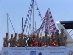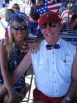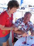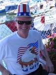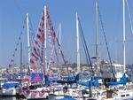 Newport Beach Mayor Don Webb welcomes US Marine Josh Rynders aboard the Defever 52 donated by Horizon Yachts. Bob and Marcy Clark have been members of ALYC for over 10-years. Patriotic yachts gather for the Newport Beach Old Glory Boat Parade on July 4th. The American Legion office manager Linda Christensen doubles as the 4th of July bartender. Paige Anderson and Al & Peaches Yarrington sell plastic bead necklaces to help raise money for veterans and troops. Ron Anderson buys a handful of beads to support a worthy cause. "Seagals" Jo Mosher Stump, Julie Smith and Mary Martin. Dick Porch, the director of the ALYC. Ebon Jones meets Looie-the-Clown. Ebon Jones, 92-years old, knows how to make everyone laugh--especially clowns. According to Ebon, you're never too old to play the harmonica. Cherie on the 4th of July. *Photo by Gracie, age 4. Patrice trimming the jib on Electre. Don't let that little miss innocent act fool you. Gary plays the headsail like a drum. Elizabeth and Steven. Whisper. Mark & Erica. Suzi & Beth. USS Bug Tug. Chugging along. That's illegal in some states. Look...we're flying! Kids...don't try this at home. Now that Lee's up...how does he get down? Racing in Newport Beach with Beth. Erica at the helm. Beth and Suzi. Click on each picture to see it full size.