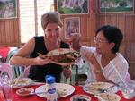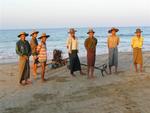 Is Cherie being lazy or is she helping the local economy. You decide. Jean in the shade. Myanmar woman. Jean walks down the street. Three generations. Cute Myanmar kid. Time for a nap. I wonder what his sign says. The Shopkeepers. Why won't the ball obey and just go in the pocket? Billards in Burma. OK, who wants to break it to the people of Myanmar that there are no beaches in Las Vegas? Do you prefer fish or bananas? Jean snaps a photo. Getting fanned while eating lunch. Exploring the beach. It's more fun to share. Jean in the water with an umbrella. The sun slowly slips away. A monk takes a stroll along the beach. I wonder what he's thinking as he stops to stare at me. I'm not sure what they are doing...but it looks serious. That's the engine for the boat. Some assembly required. Rowing through the waves. Heading for the horizon. Myanmar man in the light of dusk. I am smiling! Young boy on Ngwe Saung Beach. The inner-tube renter. Absorbed in a good book. Bernadette admiring the view. The ladies trip to Ngwe Saung Beach: Jean, Aunt Lynda, Bernadette and Cherie. Pool or ocean...it's so hard to choose. Jean and Cherie. Lynda and Bernadette from the window. Preparing to rent inner-tubes for the tourists. Breakfast crab? Men love to work on boats. Kids at play. Waiting for high tide? It's impossible to be sad while sitting in an inner tube. Jean in the pool at the Sunny Paradise Resort. A little slice of paradise. Cooling off. Double trouble. The inner-tube renter. Shade. Walking at peace. Monks walking on Ngwe Saung Beach. Footprints in the sand. Don't step on that! Pagoda by the shore. Beauty and peace. Morning worship. The trash collectors. Keeping the beach clean. Jean likes this restaurant! Hygenic fish for lunch. What's inside? Is this legal? It's hard to be serious when you are holding a coconut. Jean at the Sunny Paradise Resort. Click on each picture to see it full size.