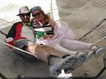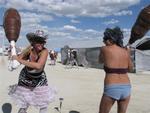 Brian, Karem, Cherie, Greg, Jessa and Andy throw on a dash of pink and head over to the Pink Mammoth for the afternoon dance party. Greg, Cherie and Brian. I'm ready for my playa fortune! Greg. The Pink Mammoth. You don't see that everyday in the desert. Who's got talent? Watching the show. Brian at the Pop Corn Palace. There's a funky means of transportation. Dogs playing poker on the playa. The natives are here. Karem on the playa. Read signs very carefully in Black Rock City. Andy on the mini-golf course. Look who has a trophy. Don't hurt Tom Cruise! Dusty friends: Cherie, Karem, Brian & Andy. Who is the guy with the puppet? Are puppets allowed? Cherie going ape on a bike. Always fight fair. Always fight with a giant drumstick. Get ready to rumble. This means war. Get the balance right. Whack! Take that. Something tells me that Dean is enjoying this. Greg and Cherie. Brian. A beautiful day to play at Primate Playground. Andy with playa-time. It's hard to separate a woman from her Cheetos. Cherie in desert pink. Does your couch swing? Why not? Cherie, Andy & Karem. Cherie & Greg. Brian getting cozy. Karem. Brian. Morning in the desert. Trying to be artsy. Music in the desert. Brian likes cookies. Do you? Big smile from Josh. Today's color is pink. Tim has lots of reasons to smile. Josh and Su. After all the work, it's time to play. Tim. Karem, Tim and Cherie. Brian makes a friend. Tim and Brian. People were "re-birthed" through this macrame "womb". This is another Burning Man thing (macrame birthing) that is difficult to explain. Cherie with a centaur. Cherie playing "Whack Ca-Nuck". She bonked Canadians on the head. Safety third. At least they have helmets on. Hey...where are my tickets so I can exchange them for a plastic spider? Molly meets a gangster with pastel treats. Relaxing at camp. Showing off a gift from Lisa! The playa panties were perfect. Cherie & Karem. Su & Josh. Cherie with the Pink Panther. Click on each picture to see it full size.